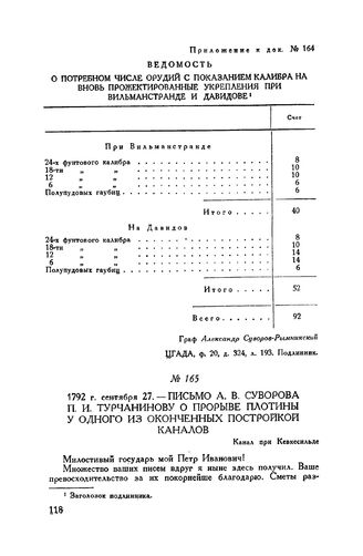 Письмо А.В. Суворова П.И. Турчанинову о прорыве плотины у одного из оконченных постройкой каналов. Канал при Кевкесильде. 1792 г. сентября 27