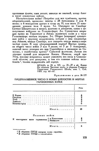 Приложение к мнению А.В. Суворова. Предположенное число в новых крепостях и фортах гарнизонных войск
