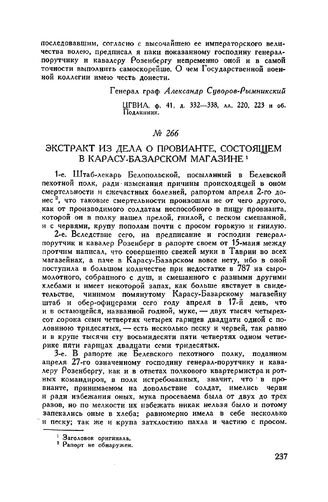 Главная Русские полководцы Русские полководцы. А.В. Суворов А.В. Суворов Т. III. 1791-1798 Документы Экстракт из дела о провианте, состоящем в Карасу-Базарском магазине