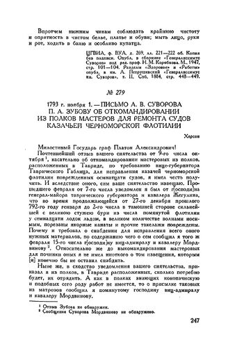 Письмо А.В. Суворова П.А. Зубову об откомандировании из полков мастеров для ремонта судов казачьей Черноморской флотилии. Херсон. 1793 г. ноября 1