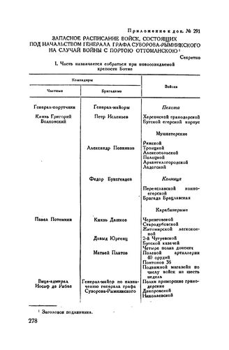 Приложение к указу Екатерины II А.В. Суворову. Запасное расписание войск, состоящих под начальством генерала графа Суворова-Рымникского на случай войны с Портою Оттоманскою