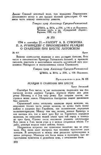 Рапорт А.В. Суворова П.А. Румянцеву с приложением реляции о сражении при Бресте Литовском. Брест. 1794 г. сентября 21