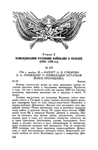 Главная Русские полководцы Русские полководцы. А.В. Суворов А.В. Суворов Т. III. 1791-1798 Документы Рапорт А.В. Суворова П.А. Румянцеву о ликвидации остатков войск про...