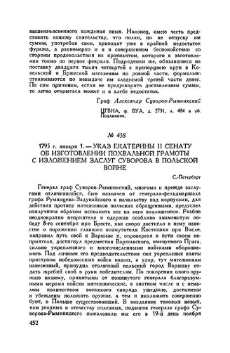 Указ Екатерины II Сенату об изготовлении похвальной грамоты с изложением заслуг Суворова в польской войне. С.-Петербург. 1795 г. января 1