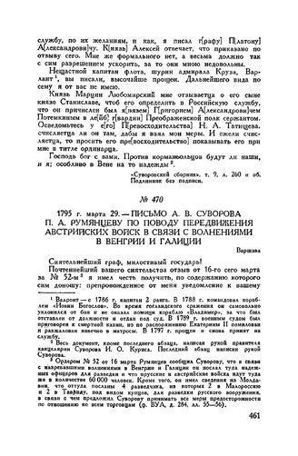 Письмо А.В. Суворова П.А. Румянцеву по поводу передвижения австрийских войск в связи с волнениями в Венгрии и Галиции. Варшава. 1795 г. марта 29