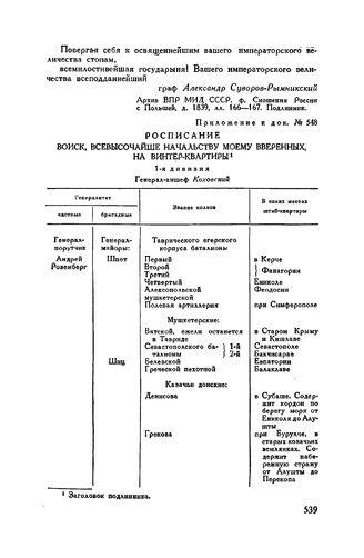 Приложение к рапорту А.В. Суворова Екатерине II. Расписание войск, ...