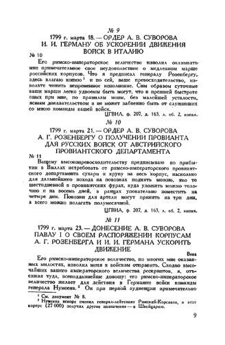Ордер А.В. Суворова И.И. Герману об ускорении движения войск в Италию. 1799 г. марта 18 // ЦГВИА, ф. 207, д. 163, л. об. 2, копия.
