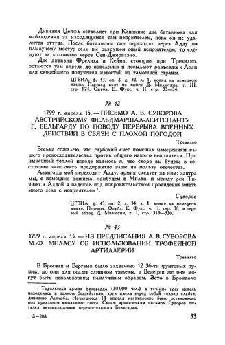 Из предписания А.В. Суворова М.-Ф. Меласу об использовании трофейной артиллерии. Тревильо. 1799 г. апреля 15