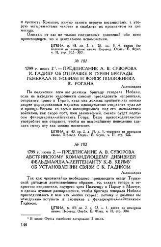 Главная Русские полководцы Русские полководцы. А.В. Суворов А.В. Суворов. Т. IV. 1799-1800 Документы Предписание А.В. Суворова К. Гадику об отправке в Турин бригады ген...