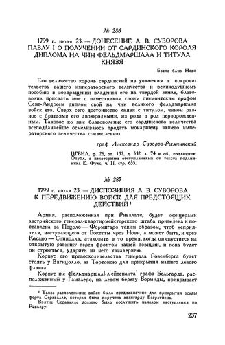 Диспозиция А.В. Суворова к передвижению войск для предстоящих действий. 1799 г. июля 23