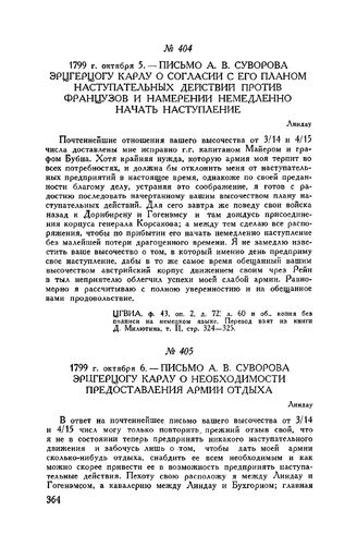 Письмо А.В. Суворова эрцгерцогу Карлу о необходимости предоставления армии отдыха. Линдау. 1799 г. октября 6