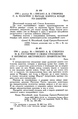 А.В. Суворов: Сб. док в 4 т. Т. IV. 1799-1800. — М.: Воениздат, 1953.
