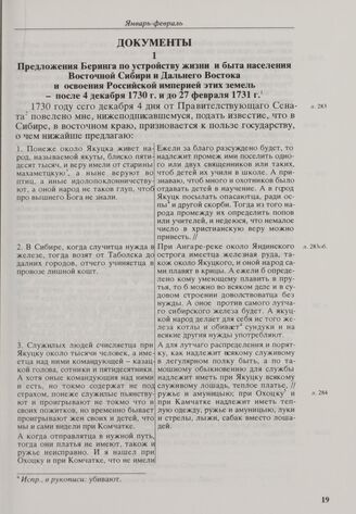 Предложения Беринга по устройству жизни и быта населения Восточной Сибири и Дальнего Востока и освоения Российской империей этих земель. После 4 декабря 1730 г. и до 27 февраля 1731 г. // РГИА, ф. 1329, оп. 1, д. 35 (Сенатские дела за первую половину 1732 г.), л. 283-288. Записки, 1851, стр. 427-435; Русские экспедиции, 1984, № 64, стр. 94-96.
