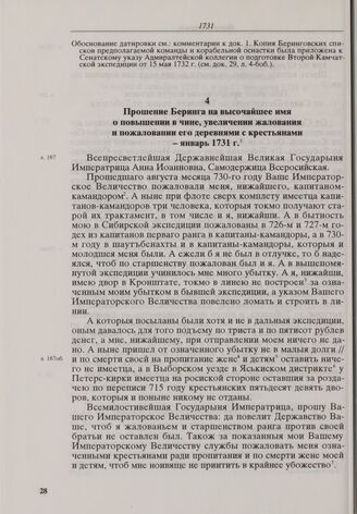 Прошение Беринга на высочайшее имя о повышении в чине, увеличении жалования и пожаловании его деревнями с крестьянами. Январь 1731 г.
