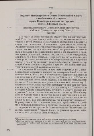 Ведение Петербургского Сената Московскому Сенату с сообщением об отправке отряда Шпанберга и выдаче инструкций. Около 14 февраля 1733 г.