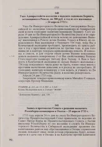 РГАДА, ф. 248, оп. 32. кн. 2061 (Реестр протоколам Сената в Москве за апрель 1733 г.), л. 338.