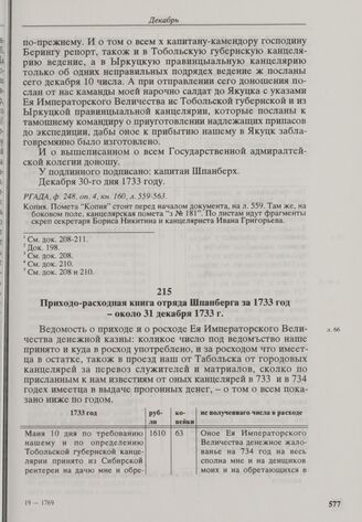 Приходо-расходная книга отряда Шпанберга за 1733 год. Около 31 дека...