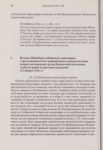 Ведение Шпанберга в Илимскую канцелярию с предложением более рационального порядка поставки подвод для перевозки грузов Камчатской экспедиции, чтобы не привести крестьян в разорение. 11 января 1734 г.
