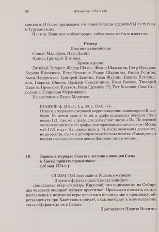 Запись в журнале Сената о желании японцев Созы и Гомзы принять православие. 16 мая 1734 г.