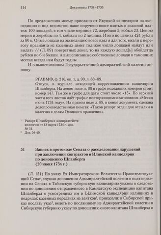 Запись в протоколе Сената о расследовании нарушении при заключении контрактов в Илимской канцелярии по доношению Шпанберга. 20 июня 1734 г. // РГАДА, ф. 248, оп. 33, кн. 2069 (Реестр крепленым протоколам Правительствующего Сената за июнь 1734 г.), л. 151. РГАДА, ф. 248, оп. 4, кн. 160, л. 572.
