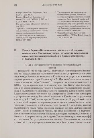 Рапорт Беринга Коллегии иностранных дел об отправке геодезистов к Камчатскому морю, которые на пути должны описать неразграниченный рубеж с Китаем в Приамурье. 10 августа 1734 г.