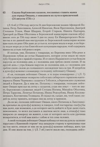Сказка березовских казаков, посланных ставить маяки для отряда Овцына, с описанием их пути и приключений. 24 августа 1734 г.