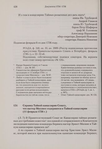 Главная Вторая камчатская экспедиция 1730-1742 Вторая Камчатская экспедиция. Морские отряды. [Ч. 2.] 1734-1736 Справка Тайной канцелярии Сенату, что пастор Миллиес содержится в Т...