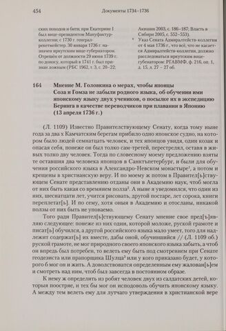 Мнение М. Головкина о мерах, чтобы японцы Соза и Гомза не забыли родного языка, об обучении ими японскому языку двух учеников, о посылке их в экспедицию Беринга в качестве переводчиков при плавании в Японию. 13 апреля 1736 г.
