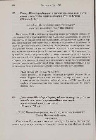 Вторая Камчатская экспедиция. Морские отряды. [Ч. 2.] 1734-1736: Док. — СПб.: Нестор-История, 2009.