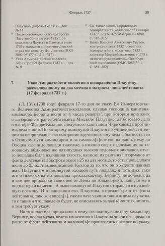 Указ Амиралтейств-коллегии о возвращении Плаутину, разжалованному на два месяца в матросы, чина лейтенанта. 17 февраля 1737 г. // РГАВМФ. Ф. 216. Оп. 1. Д. 15. Л. 131-131 об.
