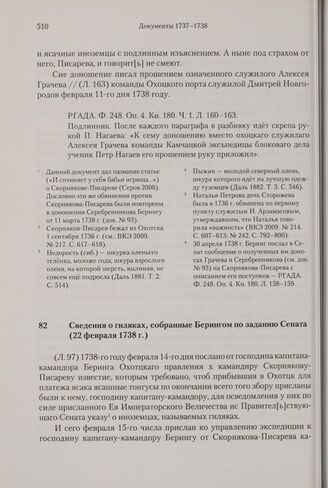 Сведения о гиляках, собранные Берингом по заданию Сената. 22 февраля 1738 г. // РГАДА. Кн. 248. Оп. 4. Кн. 180. Ч. 1. Л. 97-100 об.