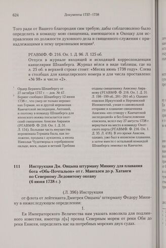 Главная Вторая камчатская экспедиция 1730-1742 Вторая Камчатская экспедиция. Морские отряды. [Ч. 3.] 1737-1738 Инструкция Дм. Овцына штурману Минину для плавания бота «Обь-Почтал...