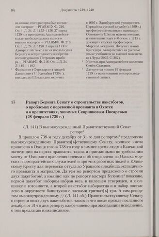 Рапорт Беринга Сенату о строительстве пакетботов, о проблемах с перевозкой провианта в Охотск и о препятствиях, чинимых Скорняковым-Писаревым. 28 февраля 1739 г.