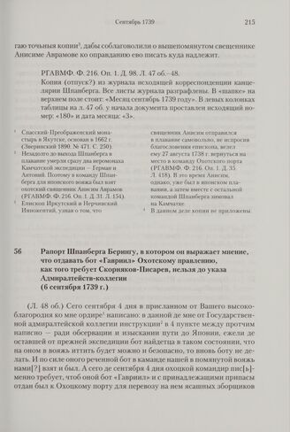 Рапорт Шпанберга Берингу, в котором он выражает мнение, что отдавать бот «Гавриил» Охотскому правлению, как того требует Скорняков-Писарев, нельзя до указа Адмиралтейств-коллегии. 6 сентября 1739 г.
