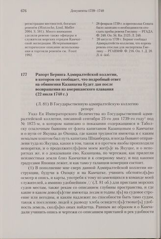 Рапорт Беринга Адмиралтейской коллегии, в котором он сообщает, что подробный ответ на обвинения Казанцева будет дан после возвращения из американского плавания. 22 июля 1740 г. // РГАВМФ. Ф. 216. Оп. 1. Д. 39. Л. 81-82 об.