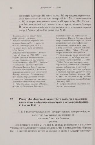 Главная Вторая камчатская экспедиция 1730-1742 Вторая Камчатская экспедиция. Морские отряды. [Ч. 5.] 1741-1742 Рапорт Дм. Лаптева Адмиралтейств-коллегии о намерении плыть летом и...