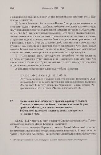 Главная Вторая камчатская экспедиция 1730-1742 Вторая Камчатская экспедиция. Морские отряды. [Ч. 5.] 1741-1742 Выписка из дел Сибирского приказа о рапорте солдата Кондина, в кото...