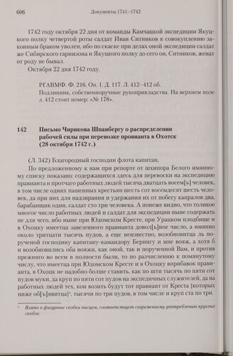Главная Вторая камчатская экспедиция 1730-1742 Вторая Камчатская экспедиция. Морские отряды. [Ч. 5.] 1741-1742 Письмо Чирикова Шпанбергу о распределении рабочей силы при перевозк...
