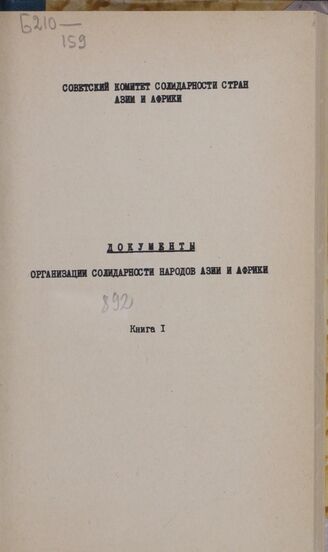 Документы Организации солидарности народов Азии и Африки. Кн. I. / Сов. ком. солидарности стран Азии и Африки. — М.: Б. и., [1964]. — 152 с.