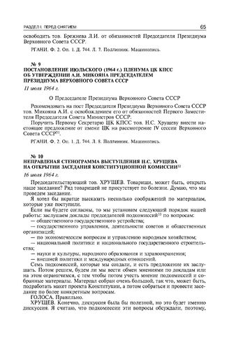 Неправленая стенограмма выступления Н.С. Хрущева на открытии заседания Конституционной комиссии. 16 июля 1964 г.