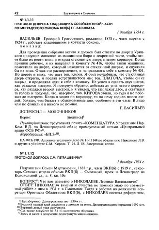 Протокол допроса С.М. Петрашевича. 1 декабря 1934 г.