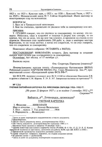 Учетная партийная карточка Л.В. Николаева образца 1926—1935 гг. [Не ранее 22 февраля 1927 г. и не позднее 5 сентября 1932 г.]