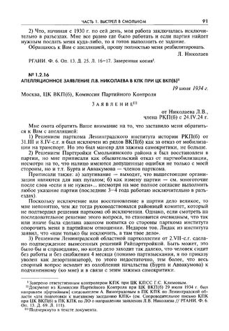 Апелляционное заявление Л.В. Николаева в КПК при ЦК ВКП(б). 19 июля 1934 г., г. Ленинград // РГАНИ. Ф. 6. Оп. 13. Д. 69. Л. 111—115. Заверенная копия.