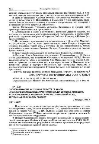 Записка наркома внутренних дел СССР Г.Г. Ягоды «Всем народным комиссарам внутренних дел союзных республик, всем начальникам краевых и областных управлений НКВД», переданная по прямому проводу. 7 декабря 1934 г.
