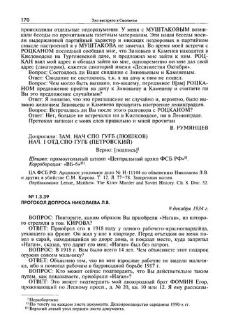 ЦА ФСБ РФ. Архивное уголовное дело № Н-1114 по обвинению Николаева Л.В. и других в убийстве С.М. Кирова. Т. 12. Л. 69—71. Заверенная копия.