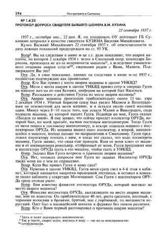 Протокол допроса свидетеля бывшего шофера В.М. Кузина. 22 сентября 1937 г.