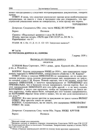 Из протокола допроса Я.С. Есинова. 7 марта 1939 г.