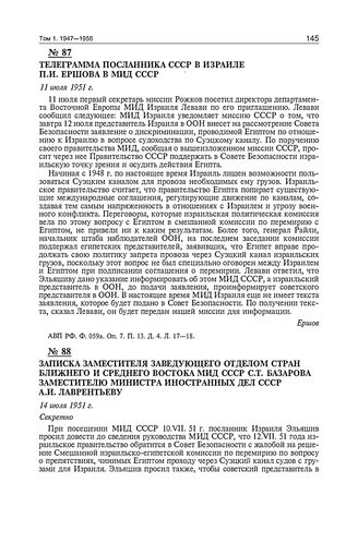 Записка заместителя заведующего отделом стран Ближнего и Среднего Востока МИД СССР С.Т. Базарова заместителю министра иностранных дел СССР А.И. Лаврентьеву. 14 июля 1951 г. // АВП РФ. Ф. 089. Оп. 4. П. 9. Д. 17. Л. 1.