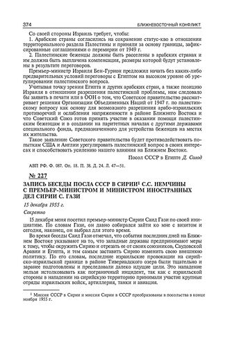 Запись беседы посла СССР в Сирии С.С. Немчины с премьер-министром и министром иностранных дел Сирии С. Гази. 15 декабря 1955 г.