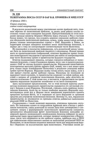 Телеграмма посла СССР в ОАР В.Я. Ерофеева в МИД СССР. 19 февраля 1960 г. // АВП РФ. Ф. 059. Оп. 43. П. 40. Д. 190. Л. 293-296.